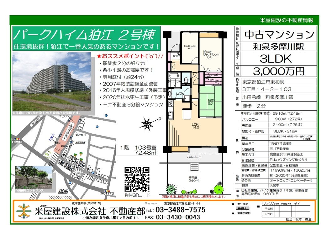 パークハイム狛江2号棟への お問い合わせは米屋建設株式会社 米屋不動産まで